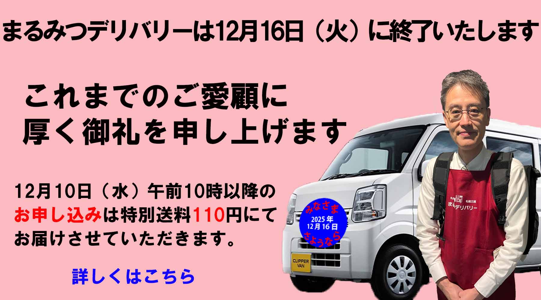 | 2025.9.17 | まるみつデリバリー終了のお知らせ |